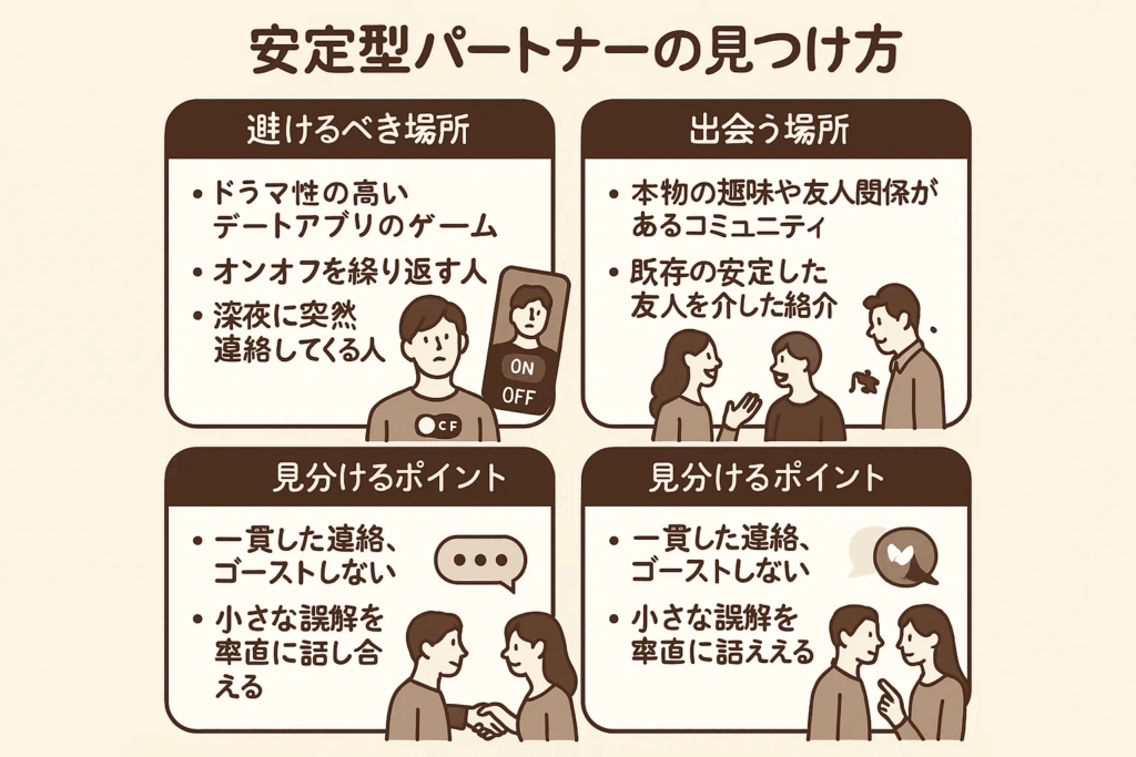 - 安定型の人は、焦らず、正直にコミュニケーションを取ってくれる