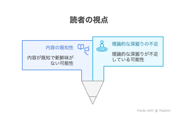 - 具体的な方法論に重点を置いているため、理論的な深掘りが不足していると感じる読者もいるかもしれない。