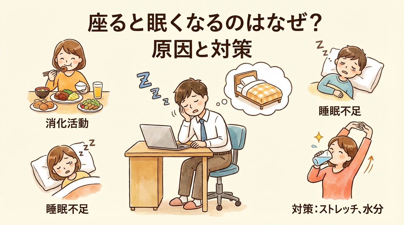 この記事では、なぜ座っていると眠くなるのか、その原因と実践的な対策をわかりやすく解説します。