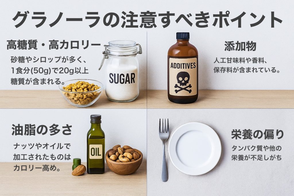 一方で、グラノーラには気をつけたい点もあります:
