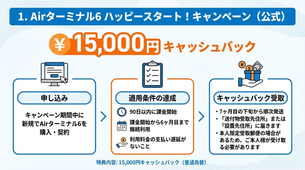 - 対象:新規でAirターミナル6を購入・契約した方