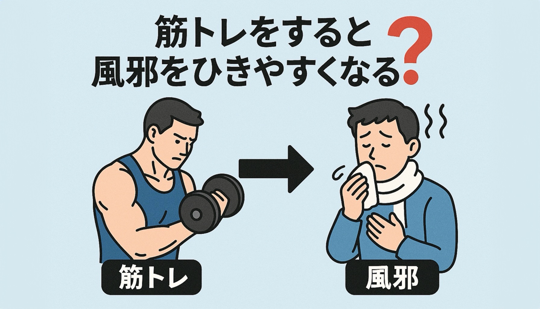 高負荷の筋力トレーニングを行うと、骨格筋への血流は増えますが、その一方で皮膚、粘膜、内臓への血流は抑制されます。血液中の白血球は粘膜において病原菌の体内への侵入を防ぐ重要な役割を担っているため、粘膜の血流が減ることは病原菌の侵入を許しやすくなり、易感染性(病気にかかりやすい状態)を引き起こす原因となります。