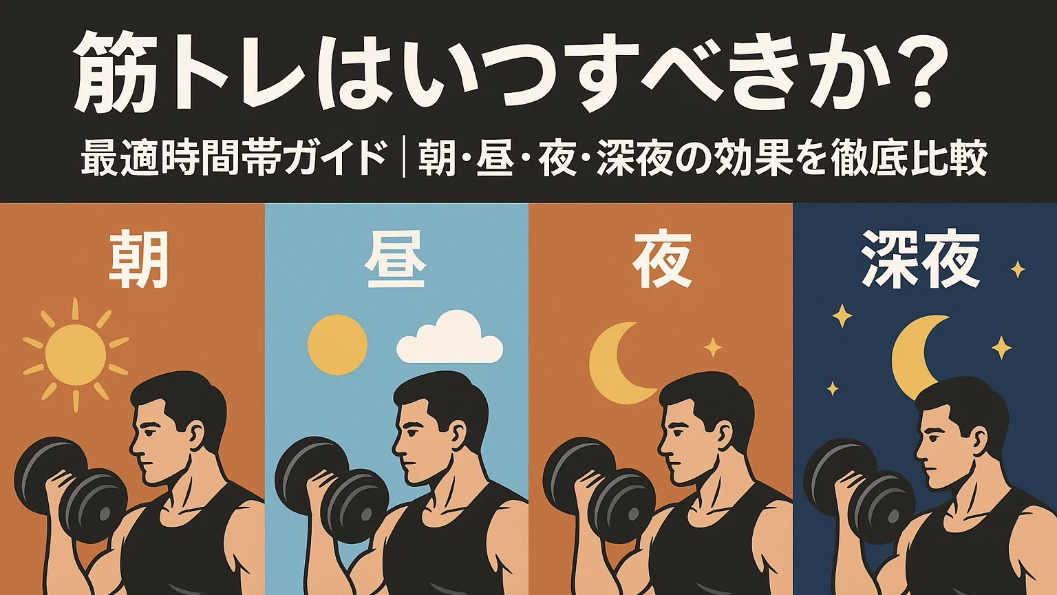 筋トレを効果的に行うには、“いつ”行うかも大切なポイントです。本記事では、朝・午後・夜・深夜それぞれの時間帯ごとにおすすめのトレーニング内容や注意点を詳しく解説します。あなたのライフスタイルや目的に合わせて最適なタイミングを見つけ、ぜひ習慣化してみてください。